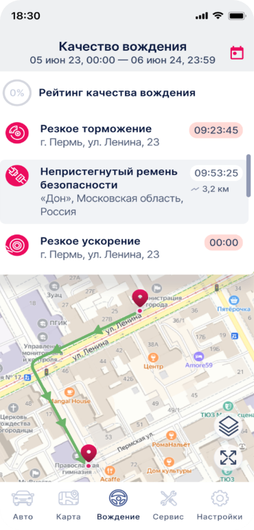 Окно «Вождение»